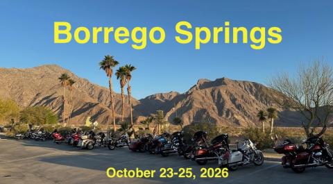 Back by popular demand we have planned on overnight ride to Borrego Springs. Borrego is considered a great place to ride a motorcycle, especially if you enjoy desert scenery and dark skies. Located within Anza-Borrego Desert State Park, you’ll find beautiful open roads and winding mountain routes. Our rides will go into the desert and up into the mountains with pine and fall foliage.