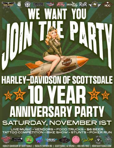 It's Harley-Davidson of Scottsdale's 10 Year Anniversary Party!
